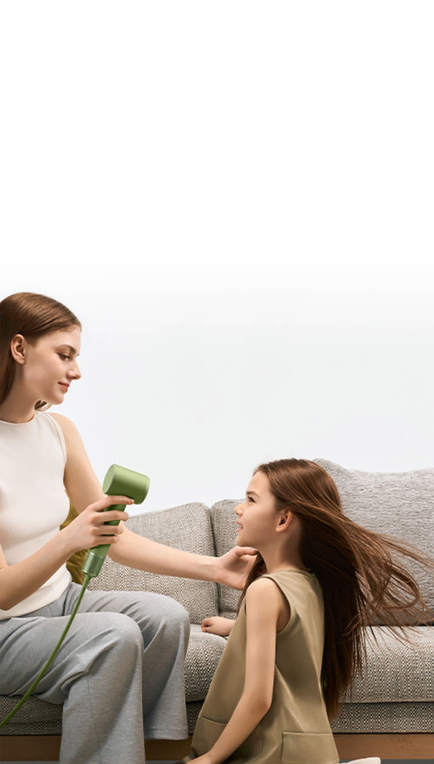 Child Mode uses gentler air temperatures (38°C for low speed and 48°C for high speed), making it safer for kids. The airflow pressure is also adjusted to be lighter, ensuring your child’s hair is protected during styling.