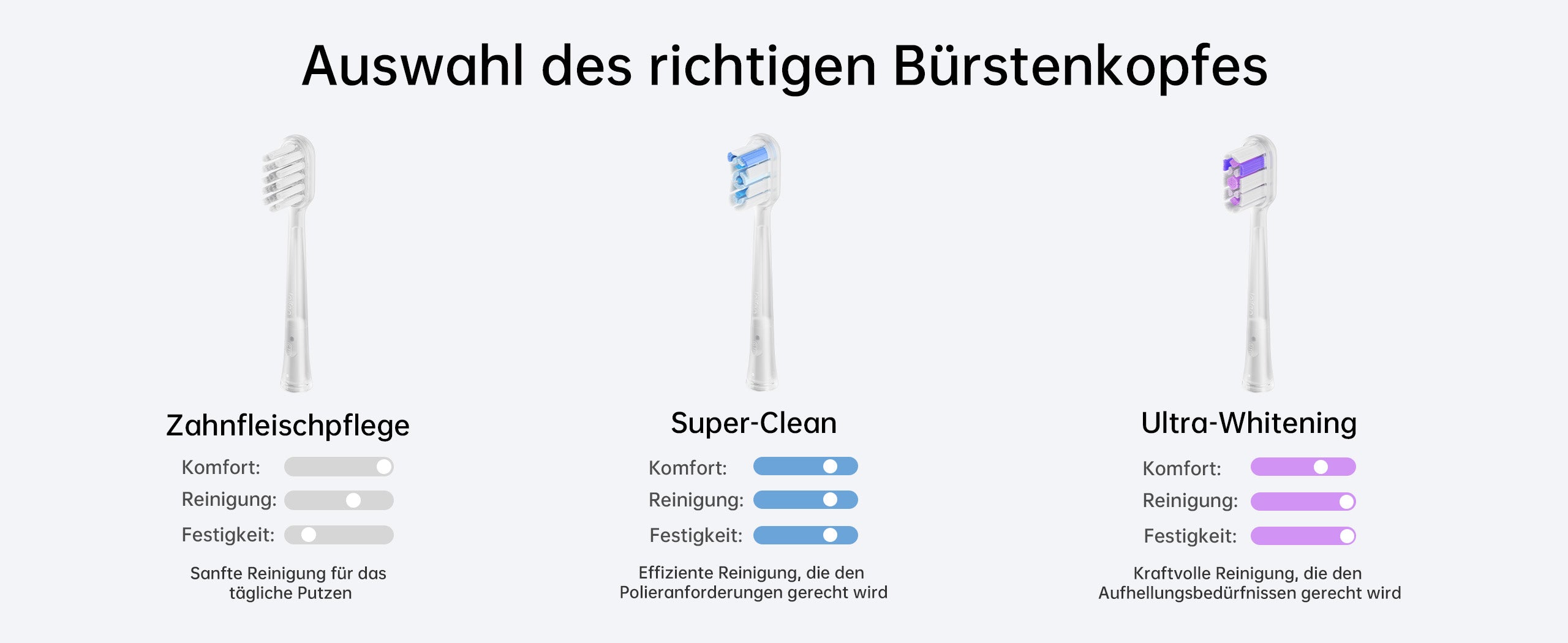 Was ist der Unterschied zwischen der weißen und der transparenten Farbe des Zahnbürstenkopfes?